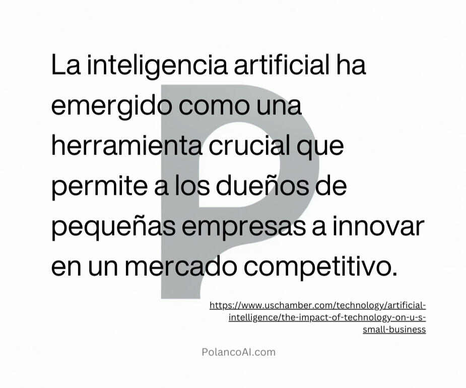 La inteligencia artificial (IA) ha dejado de ser un concepto futurista y se ha convertido en una herramienta accesible y valiosa para pequeñas empresas. Sin embargo, muchas veces se percibe como algo complejo o intimidante.En Polanco AI queremos hacer de la IA algo accesible para integrar al manejo de tu empresa.